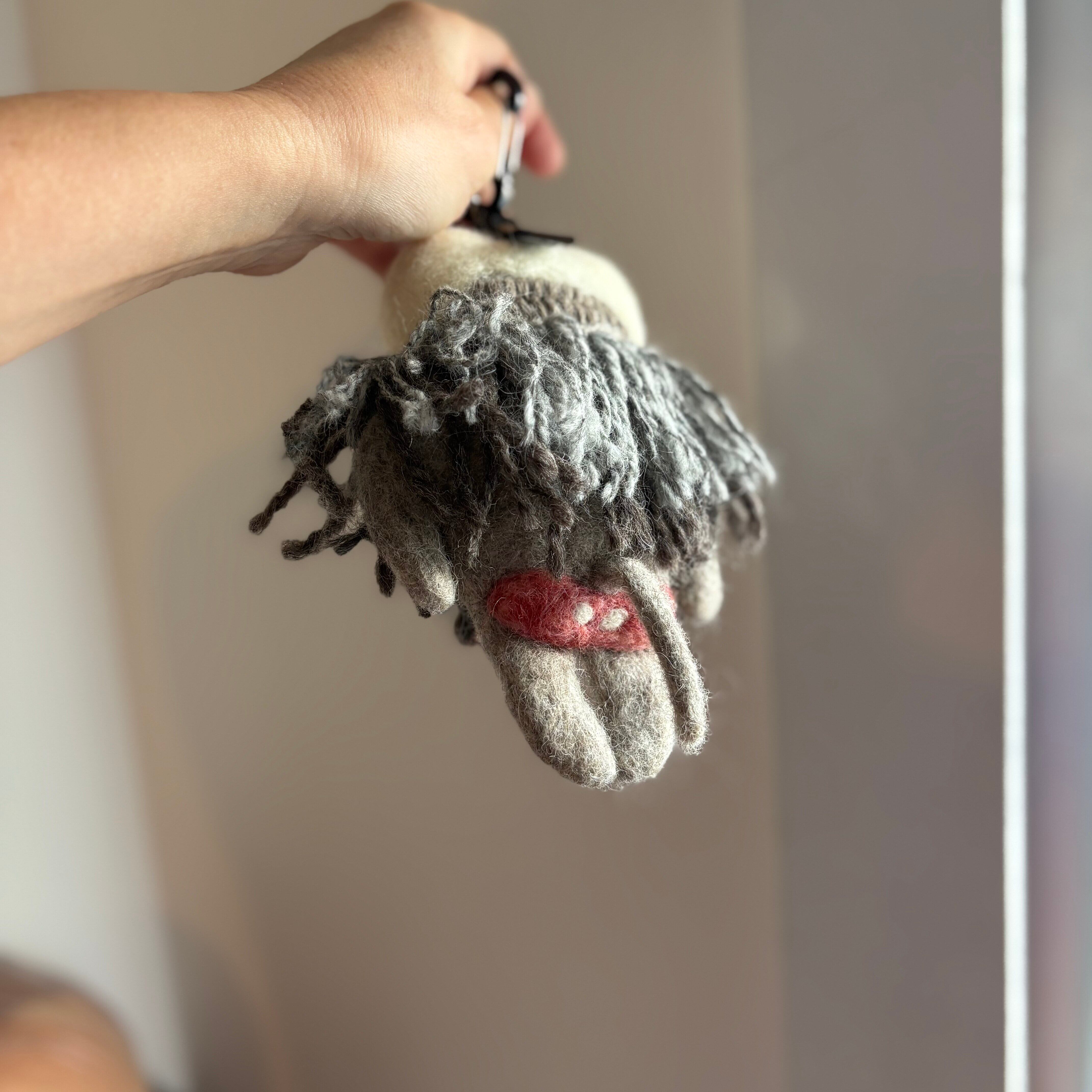 顔とお尻、尻尾はニードルで作ったので、擦ったり、水に濡れたりすると、