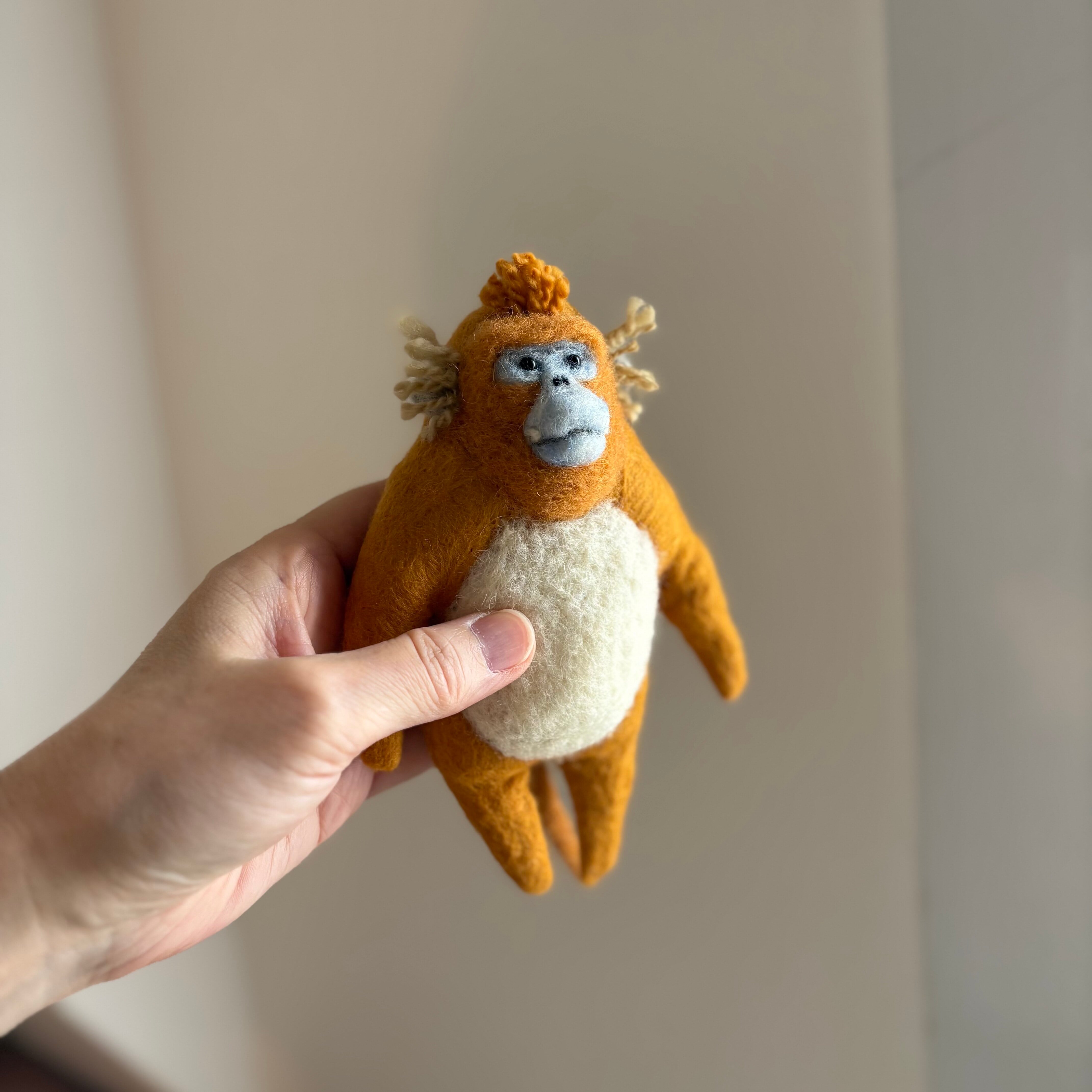 The face, butt, and tail were made with a needle, so please be aware that they may pill easily if rubbed or wet.