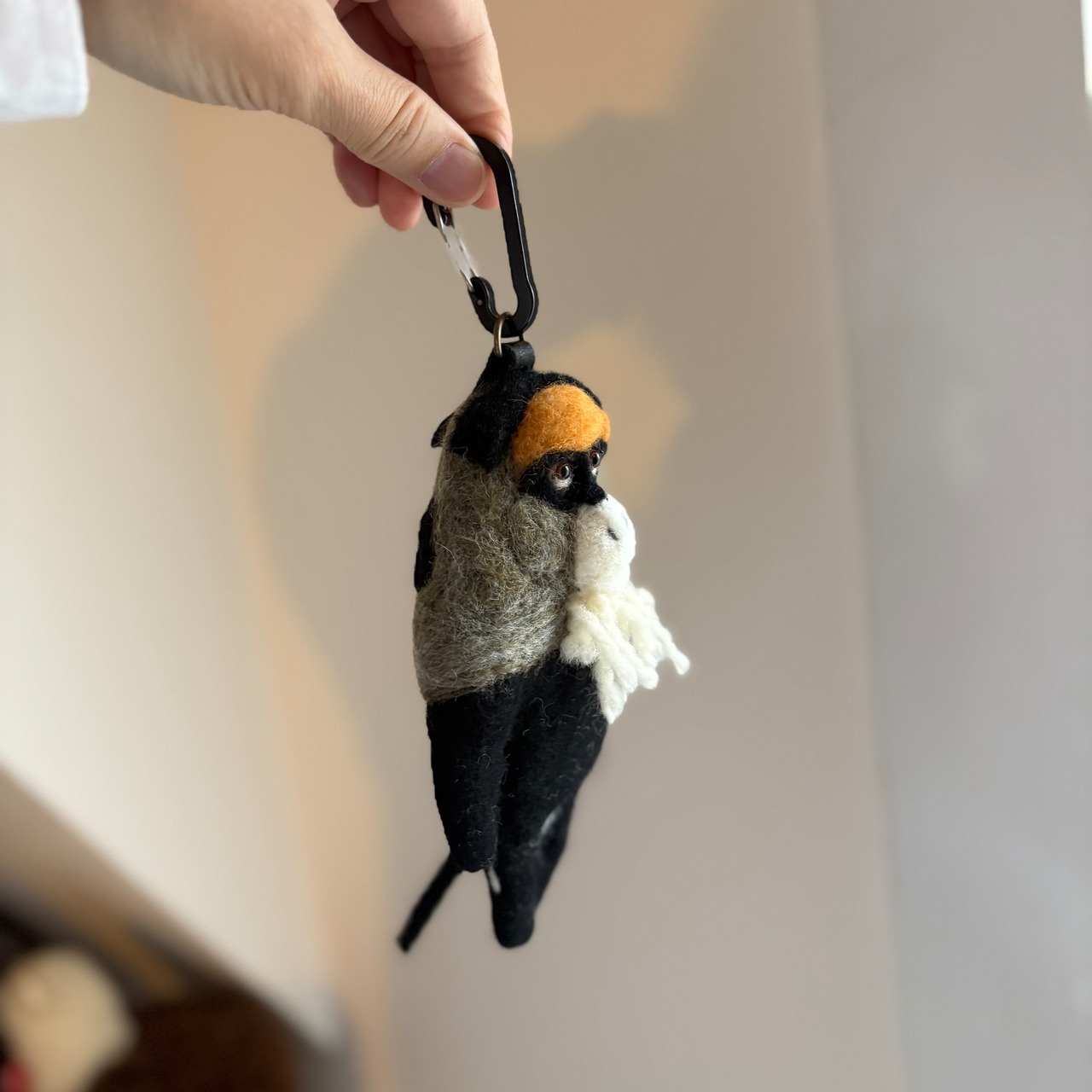 顔と尻尾はニードルで作ったので、擦ったり、水に濡れたりすると、