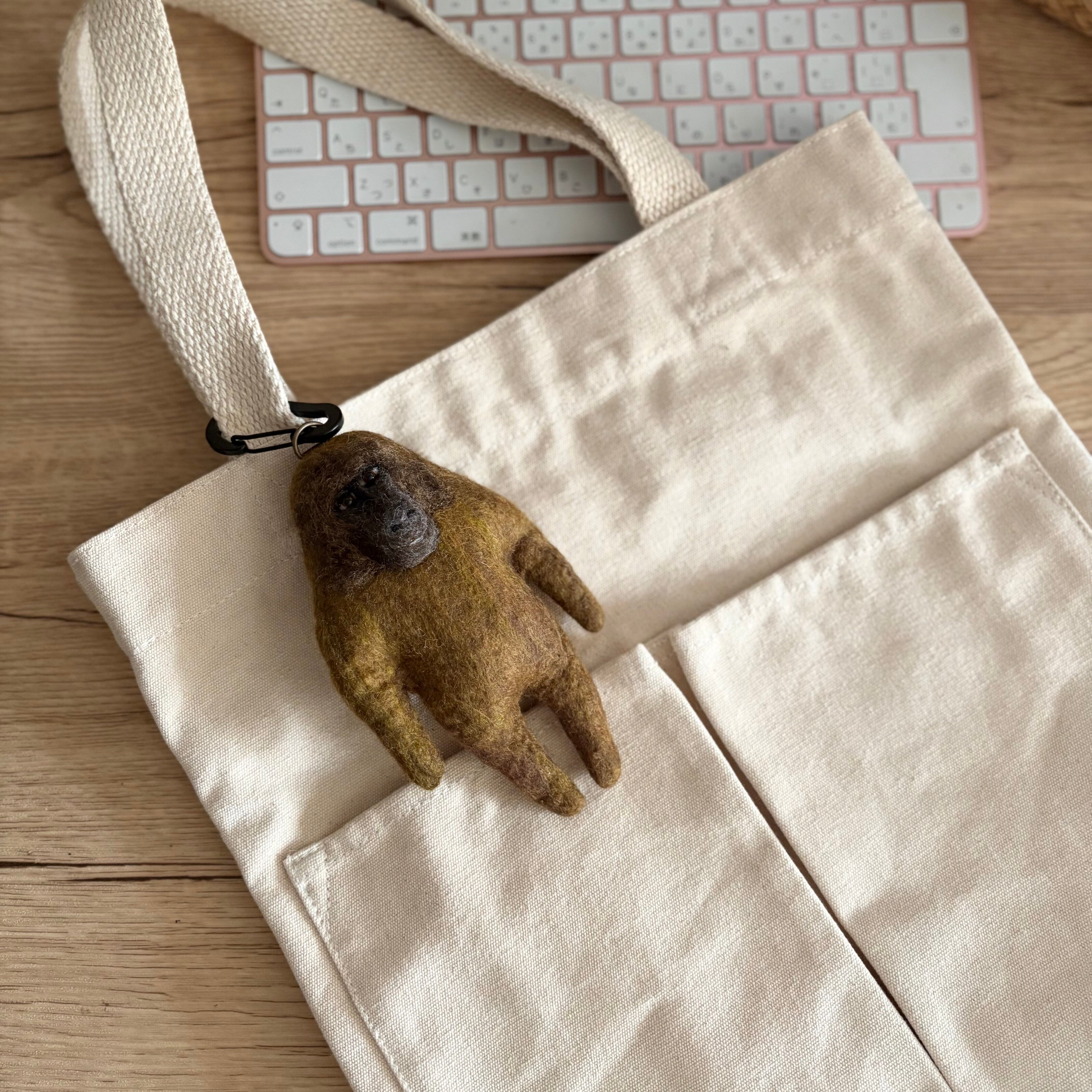 ※今回より金具を5cmのカラビナに変更しました。太い持ち手にもつけられます。