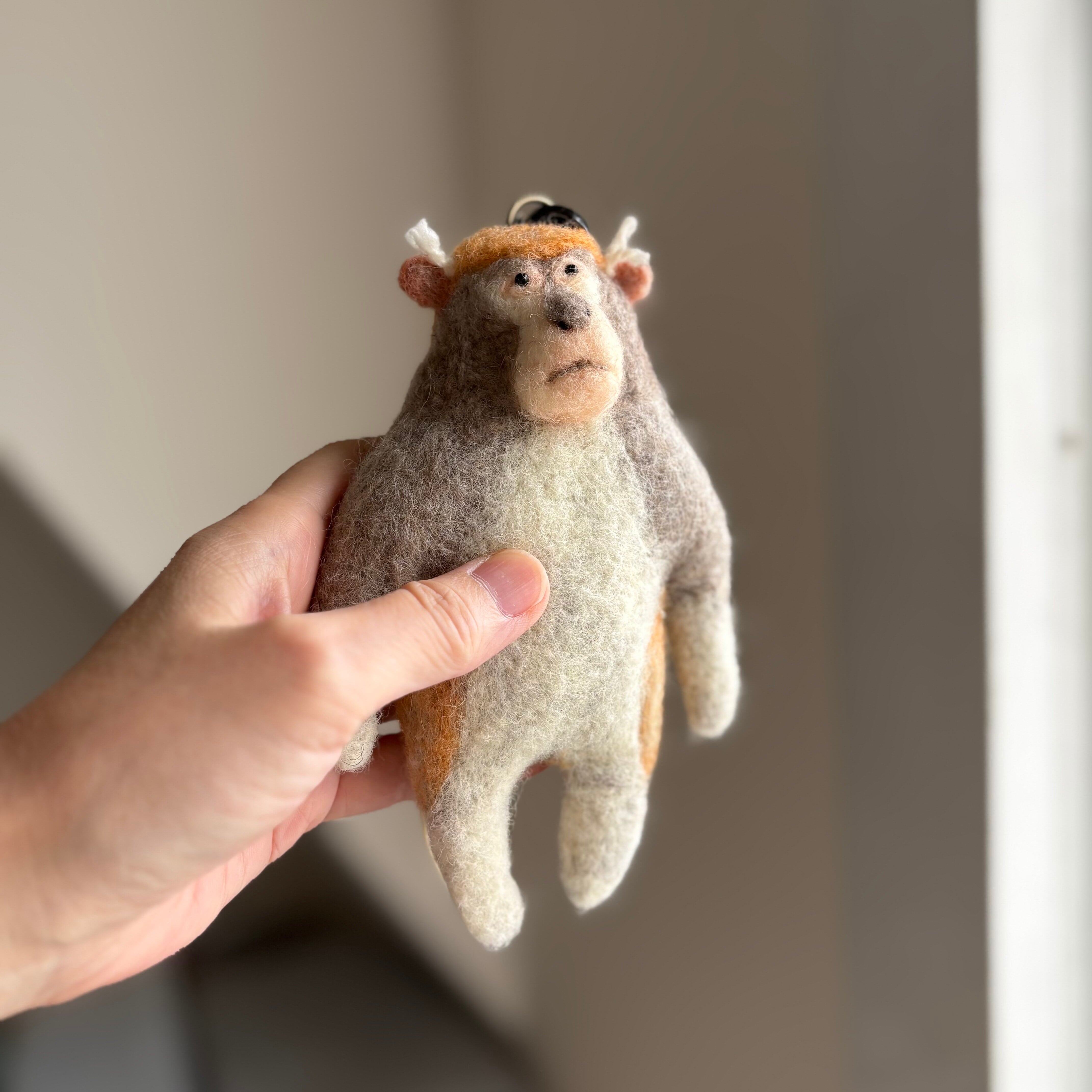 今まで、リアルなサルを作っていて、もう少し扱いやすくて、持ち歩けるものを!