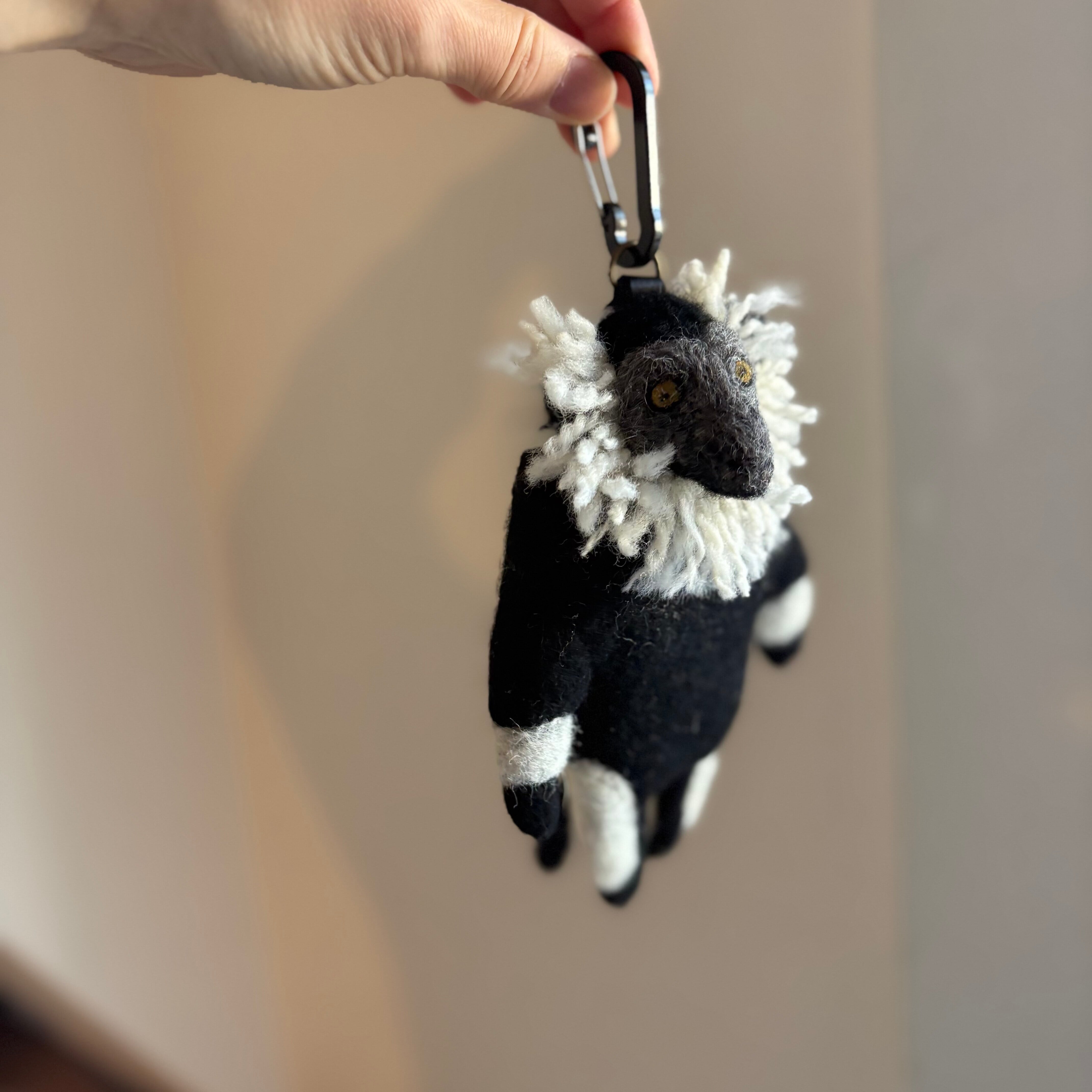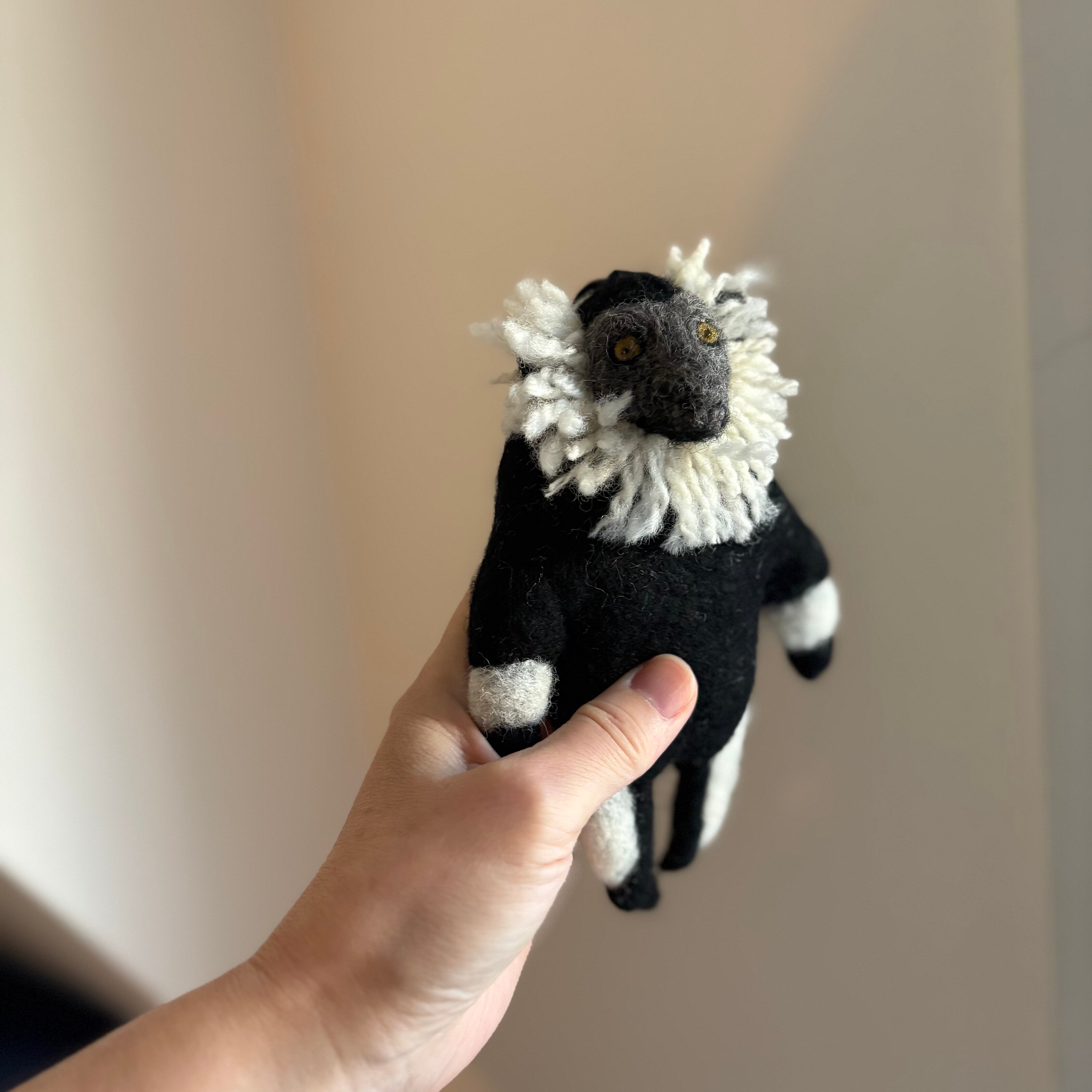 The eyes are made from wool and resin.