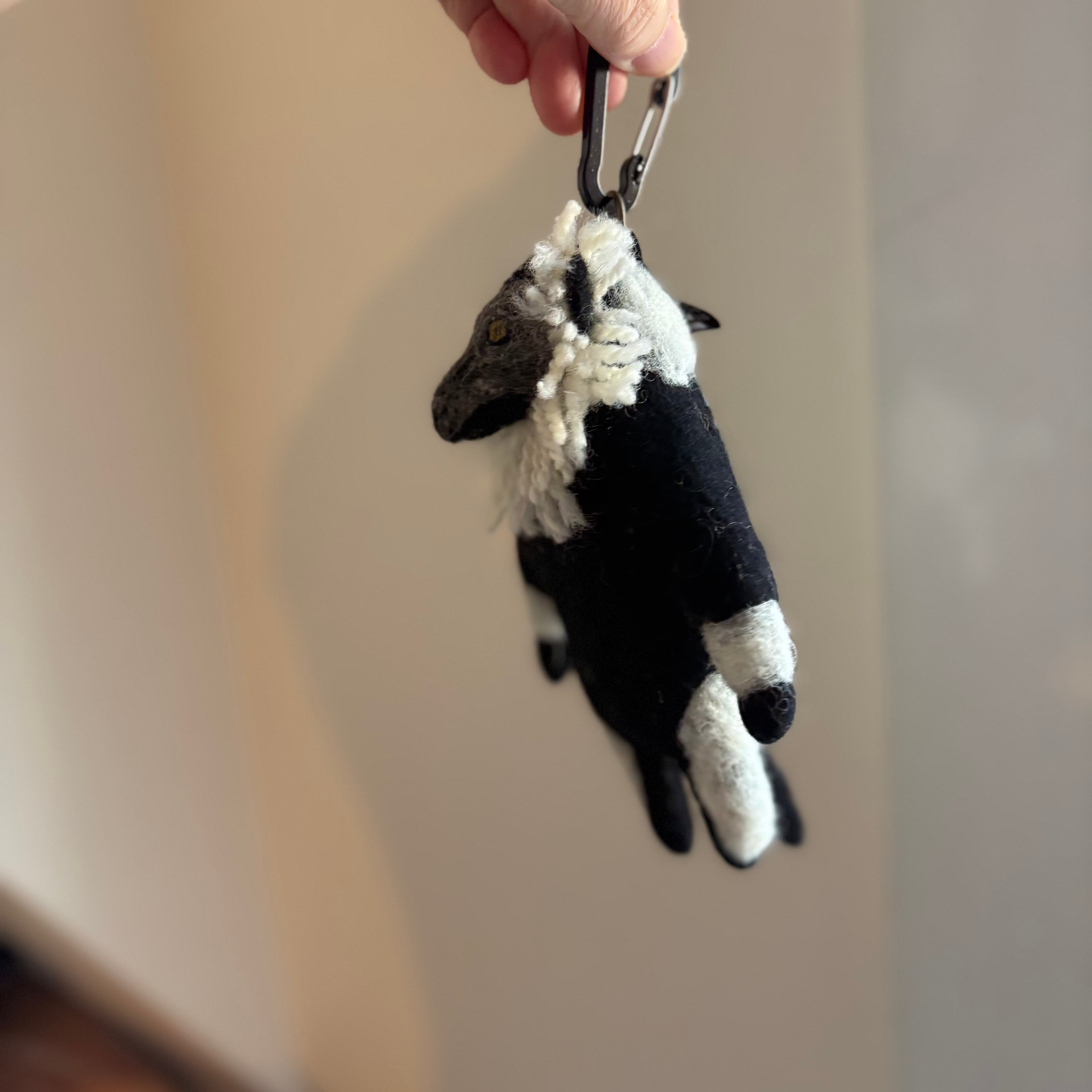 目は、ウールとレジンで作りました。