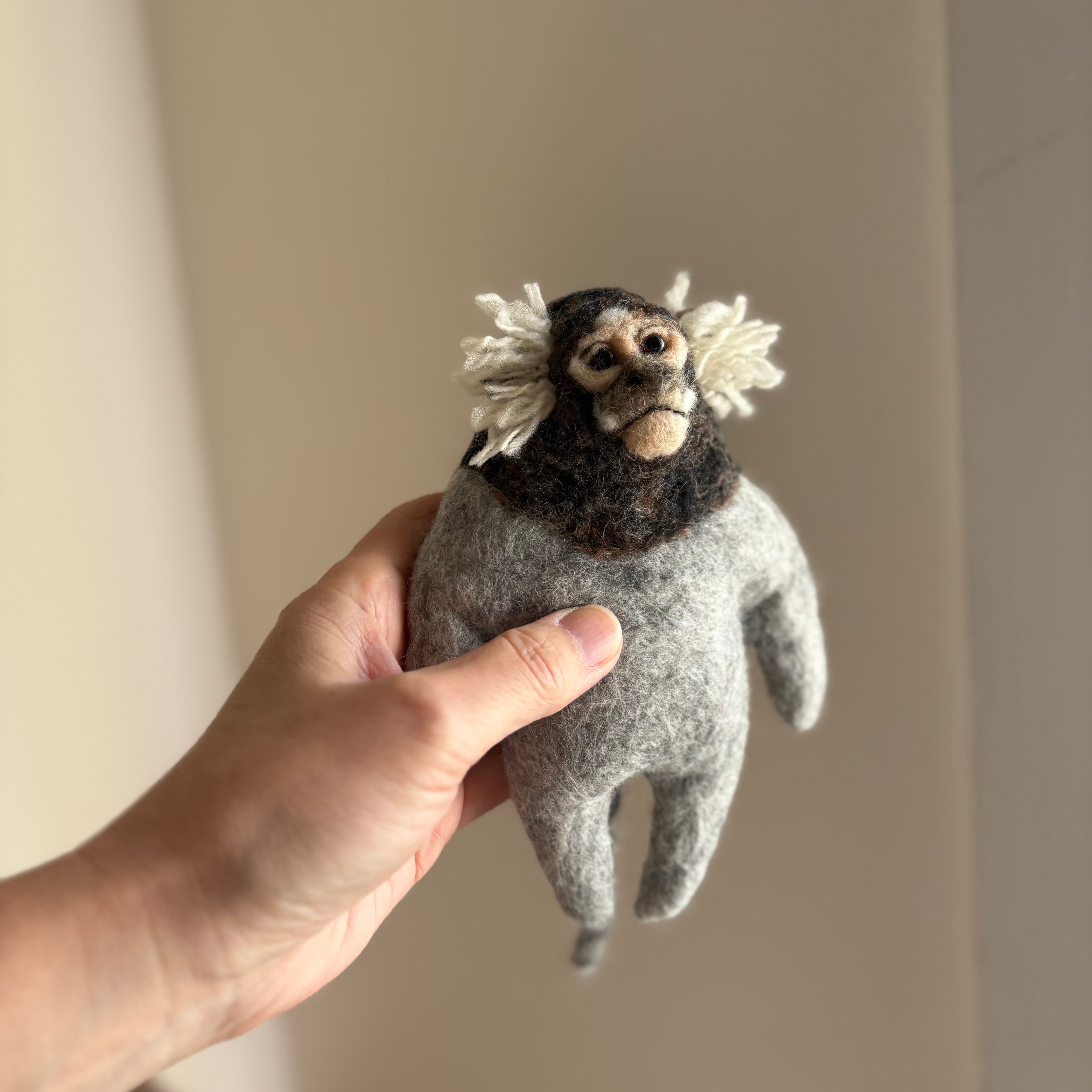 The face and tail were made with a needle, so please be aware that they may pill easily if rubbed or wet.