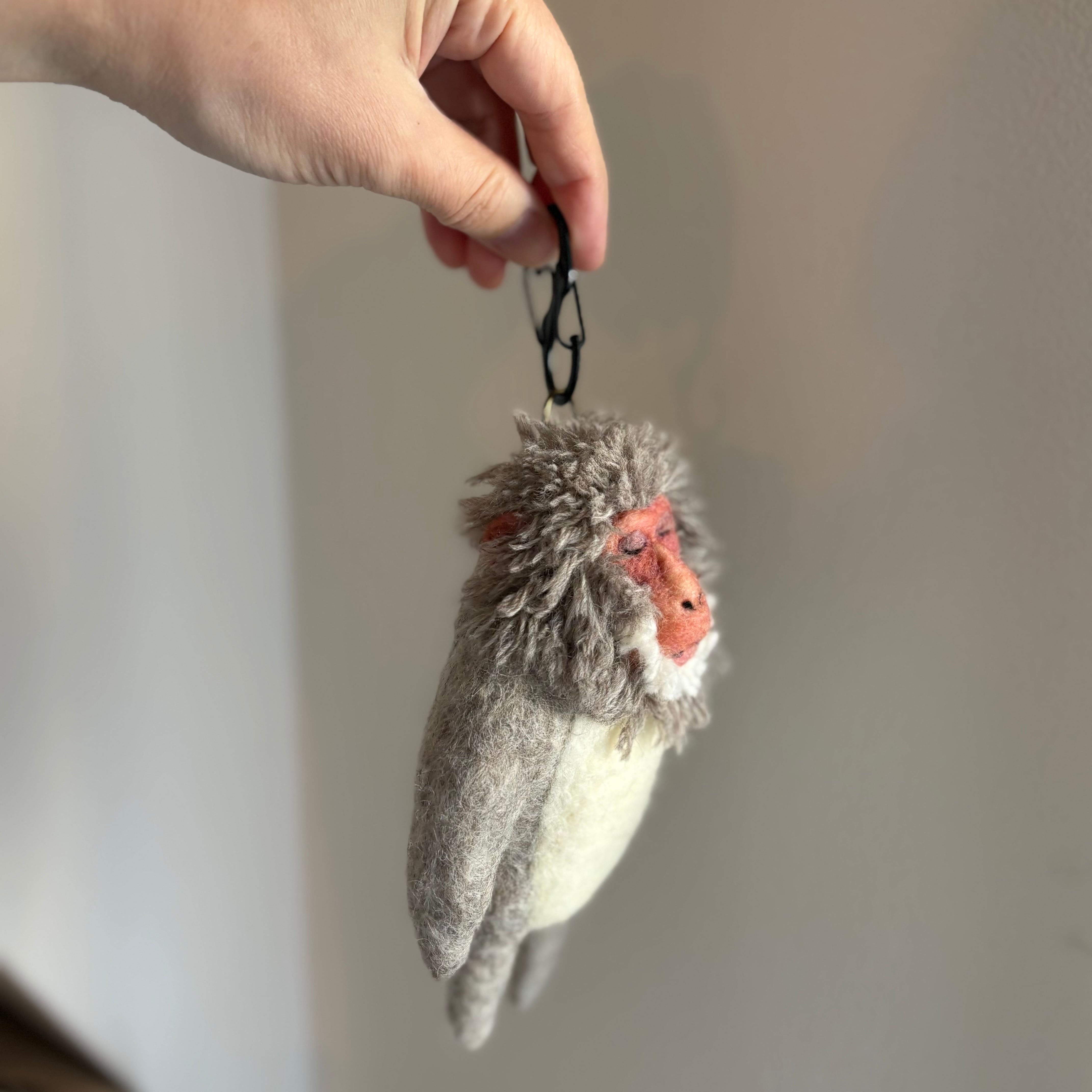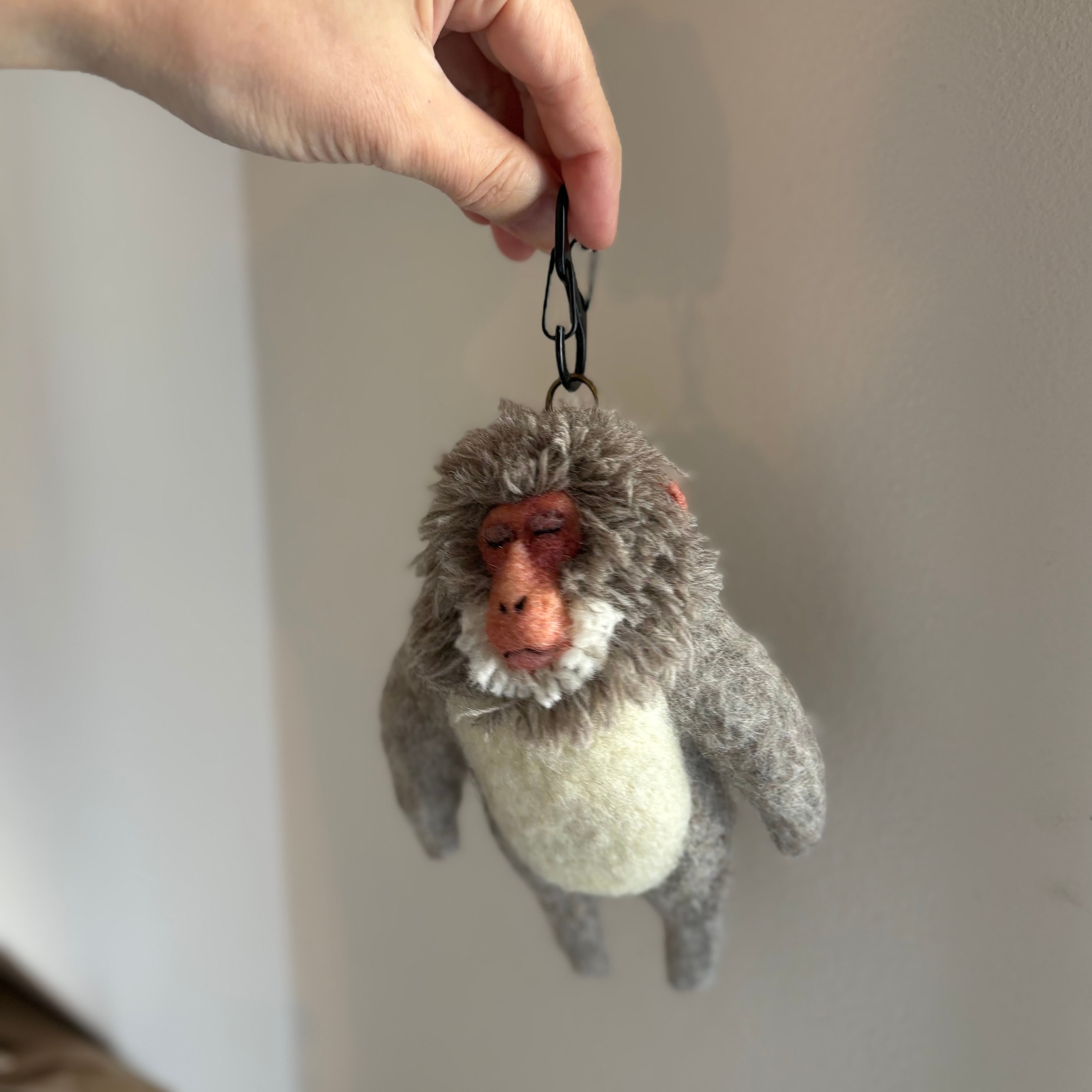 目を閉じるニホンザルのキーホルダー