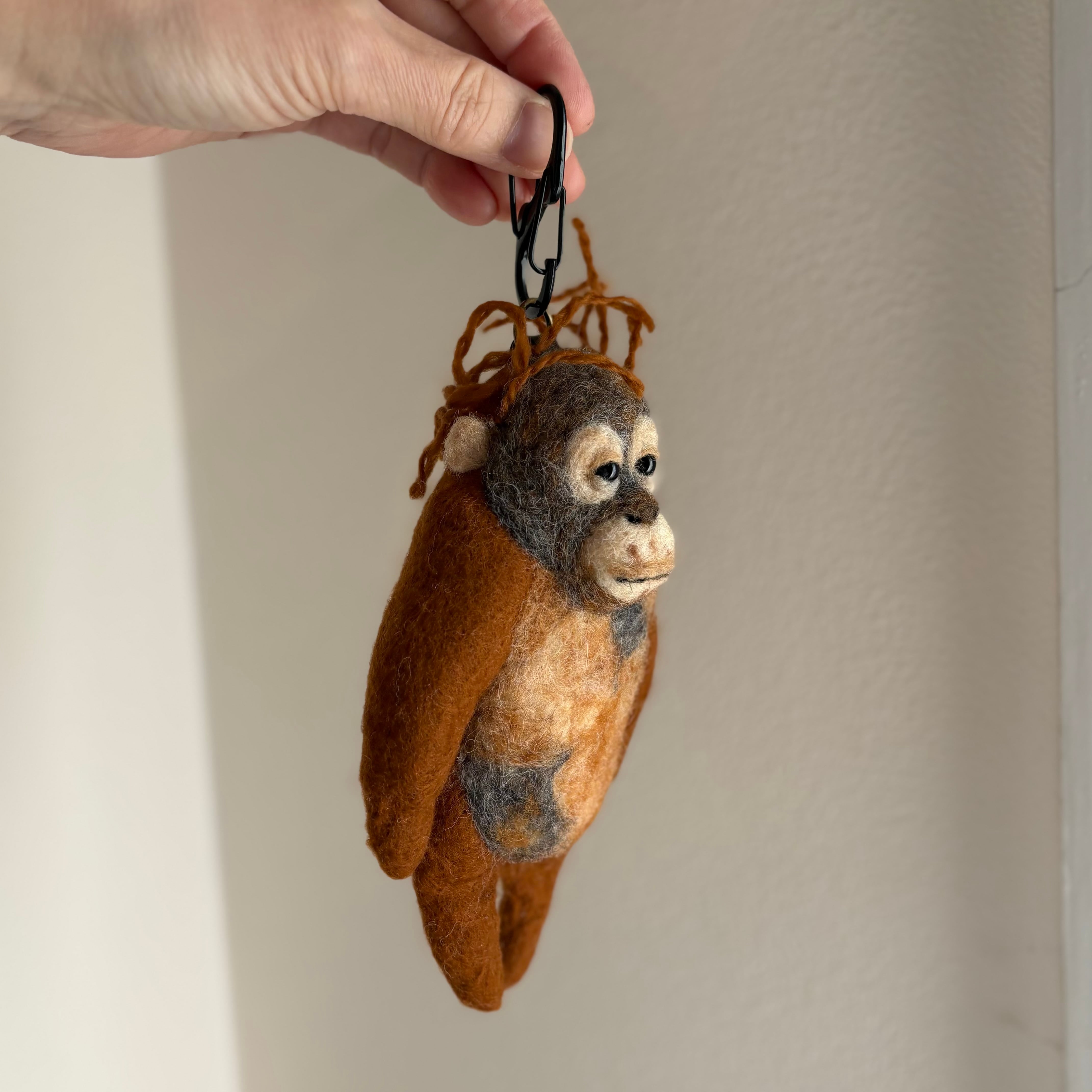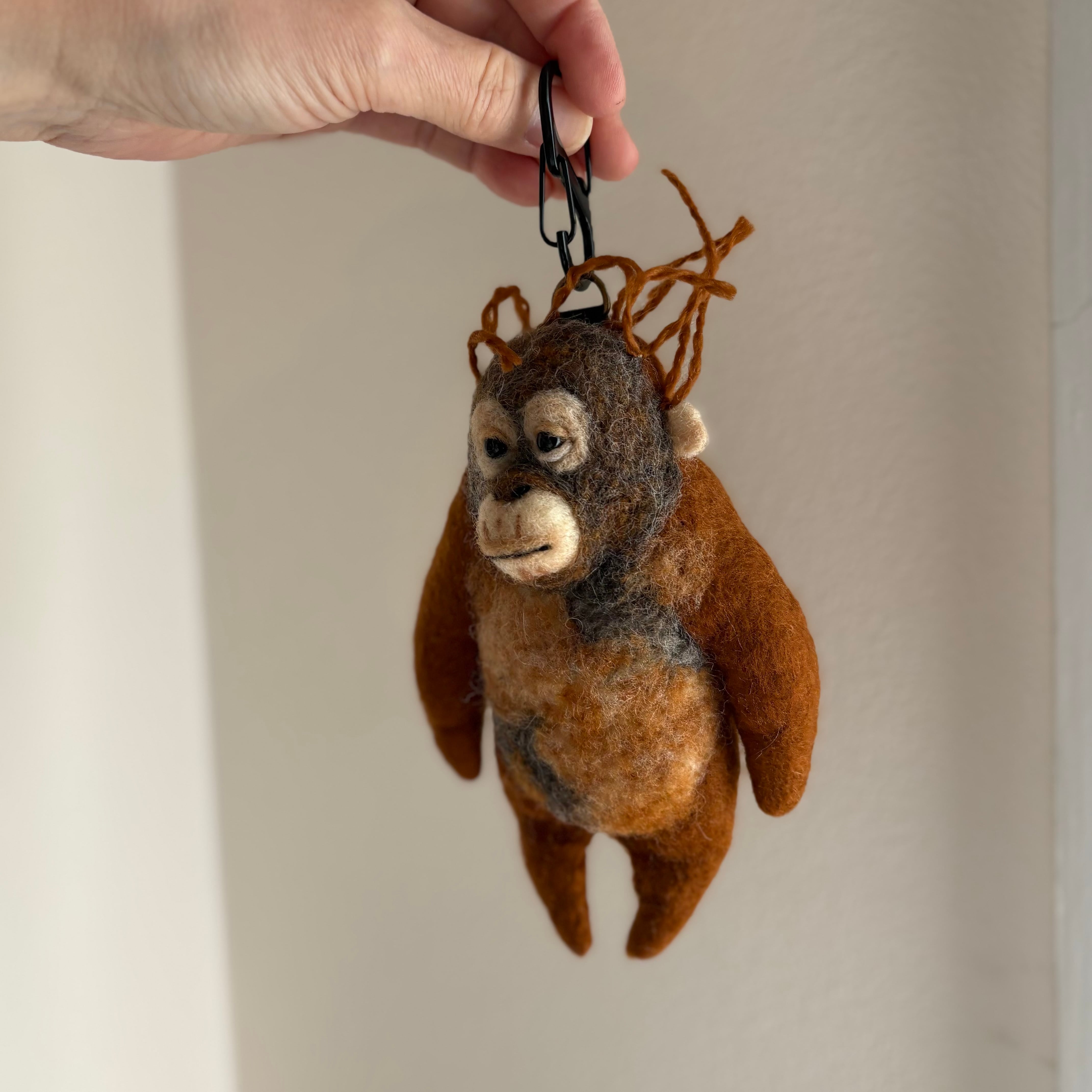 This keychain is inspired by a baby orangutan.