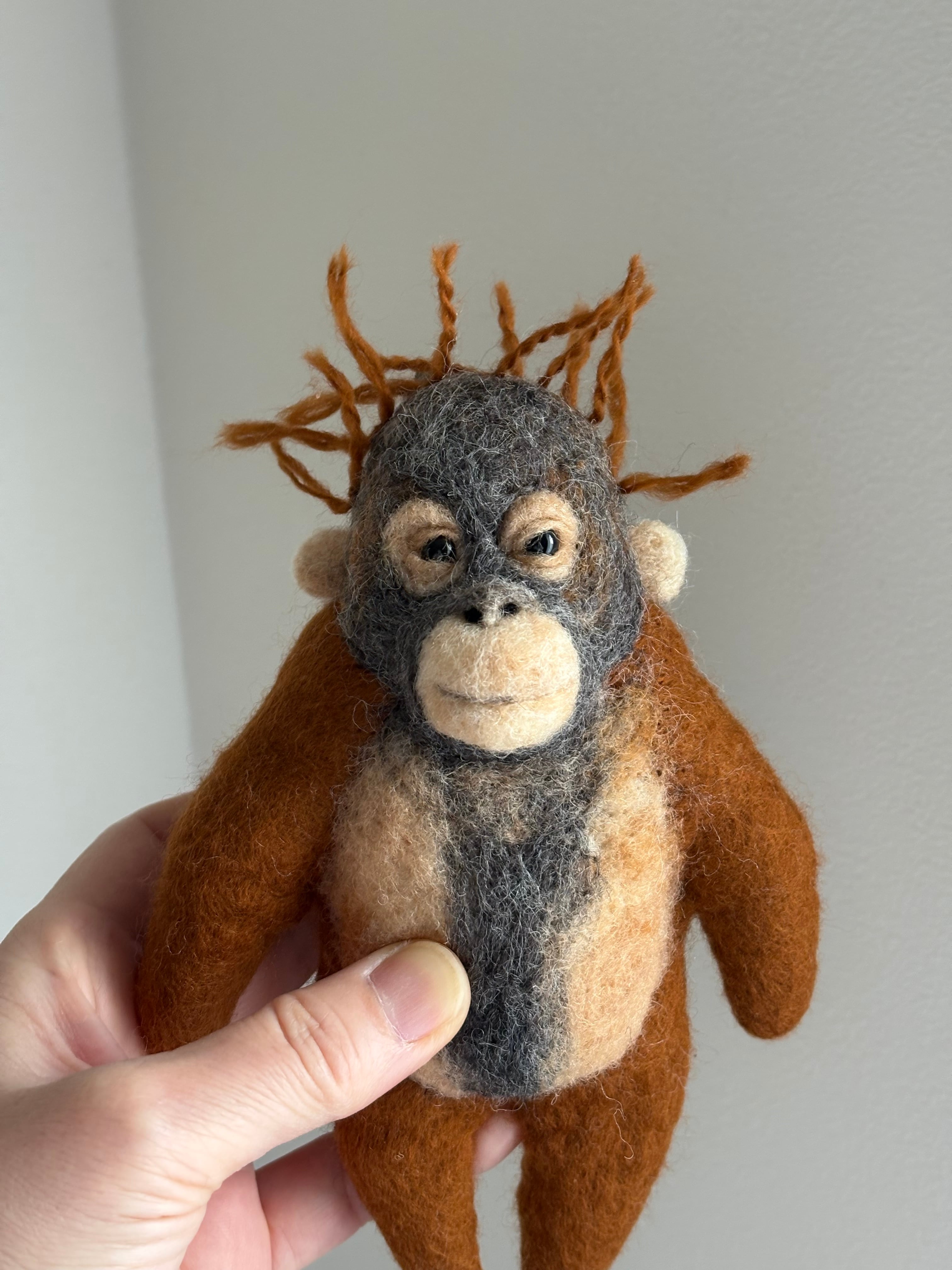 赤ちゃんの頼りない体毛を毛糸で表現しました。小さい尻だこもご覧いただきたい!