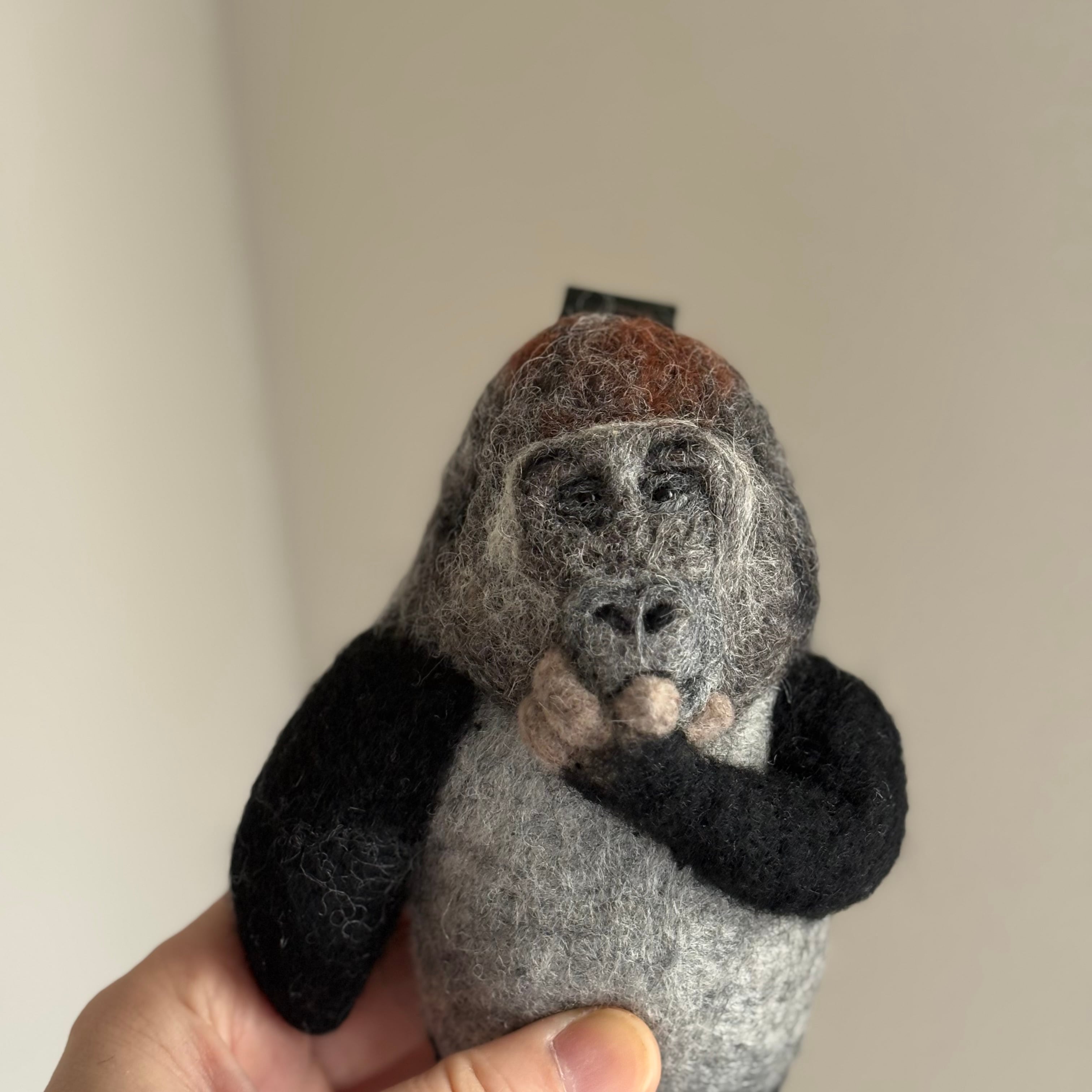 #003指しゃぶりをするシルバーバックゴリラのキーホルダー