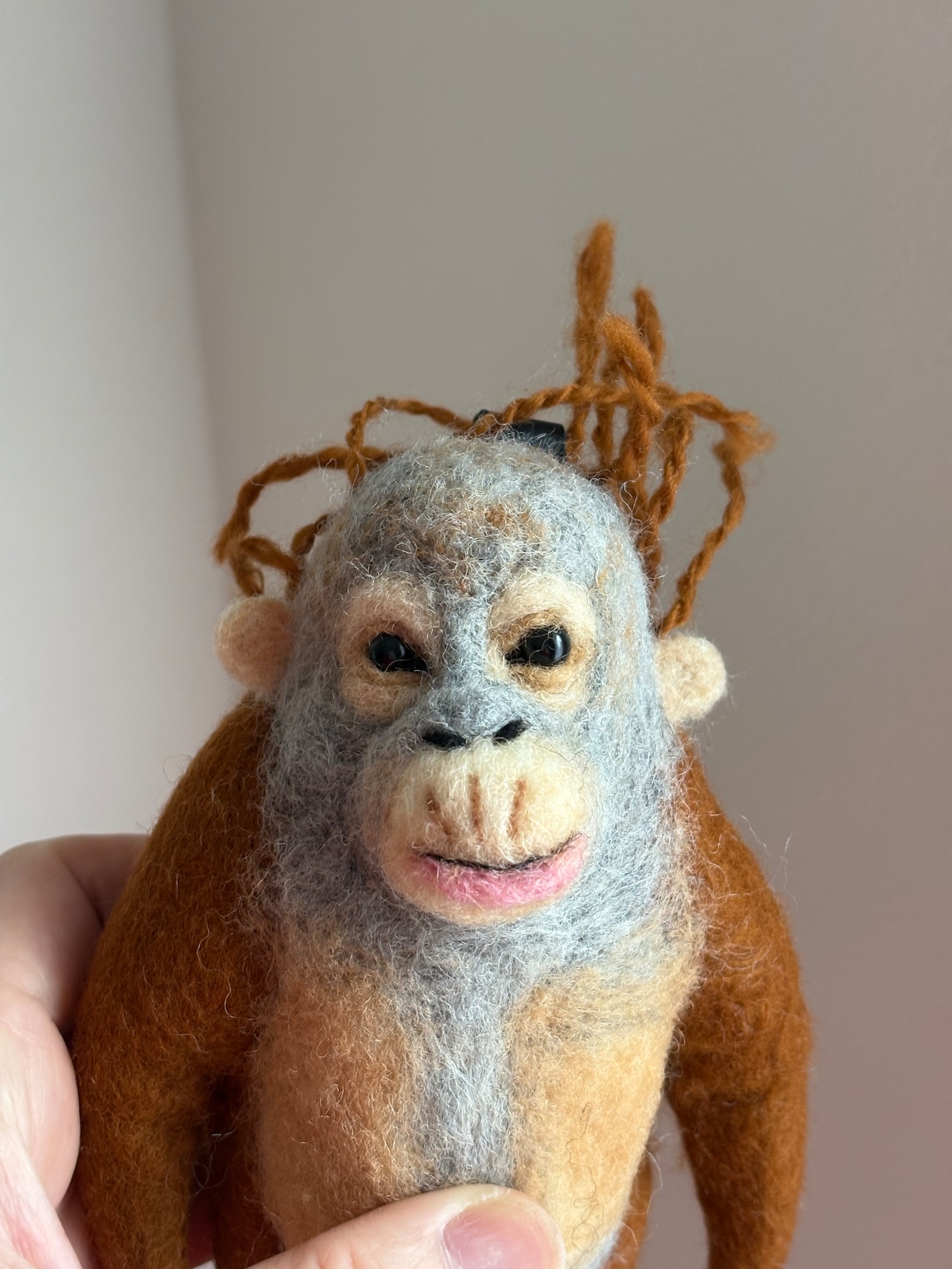 #011ムスッとするオランウータンの赤ちゃんのキーホルダー